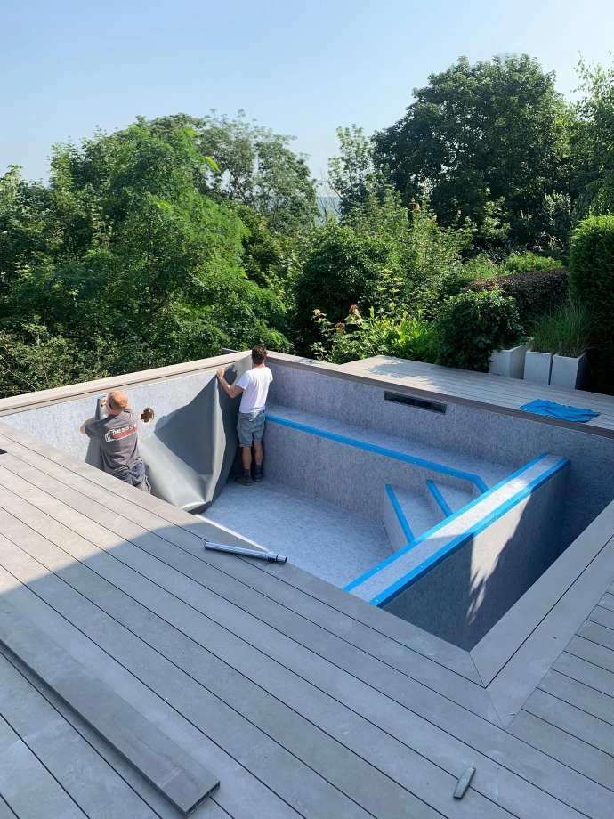 Construction en suspension d'une piscine et terrasse
