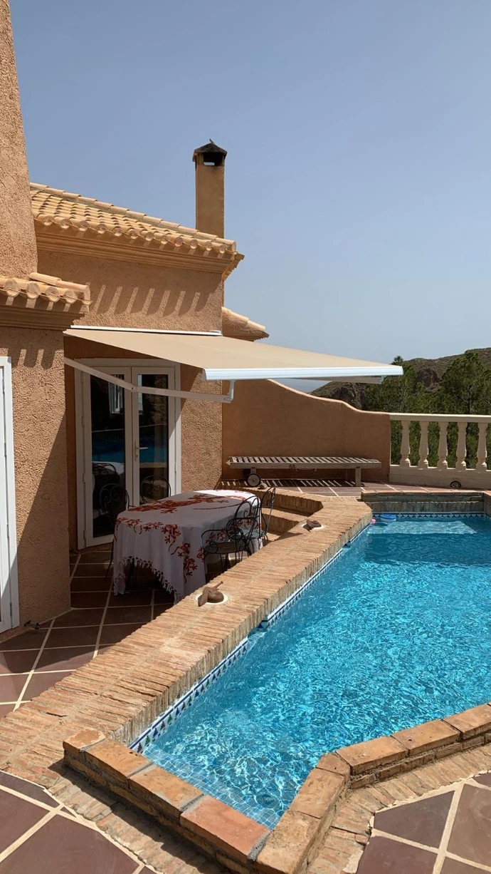 5 chambres, 2 salles d'eau, bureau, piscine, terrasses avec vue panoramique sur la vallée, jardin, 2 places de parking.